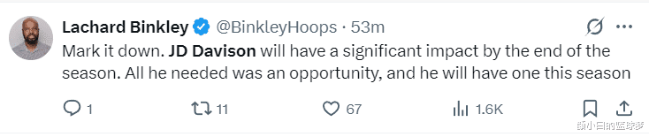 Two days ago, Uduka commented on two-way contract player Davidson: He is the G League MVP, he is very good in training camp, plays aggressively, has solid ball control skills, and makes decisions in pick-and-roll tactics very wise. He has a larger size in PG, and can lead the defense in the whole game. His enthusiasm for offense and defense is impressive. He seized this opportunity well. In the joint training, he has partnered with Shin Kyung, Durant, Adams and other core members many times.