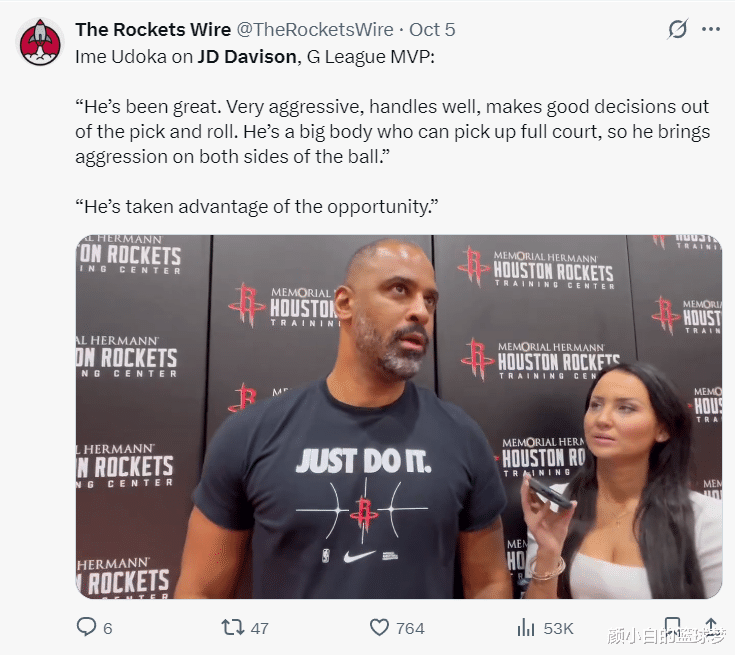 Davidson is the MVP of the G League. At that time, he averaged 25.6 points, 5.1 rebounds, 7.7 assists and 1.4 steals per game. I hope he will really become the main player in the Rockets this season.