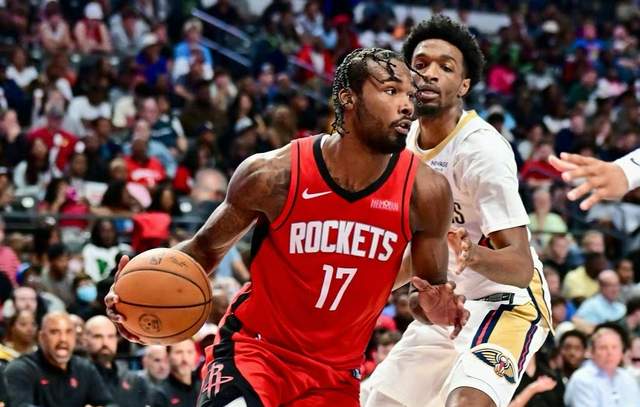 The Rockets' twin-tower tactic first appeared in the playoffs last season. In order to deal with the Warriors, Udoka chose to boldly try it, and the effect was very good. It has also been used for a long time in this preseason. In the game against the Pelicans, the Rockets directly arranged the starting lineup of Adams + Shen Jing. The team's five main players are all over two meters tall. The shortest is Amen Thompson. Durant plays the second position and Smith plays the small forward position. This move activates the two substitute generals.
