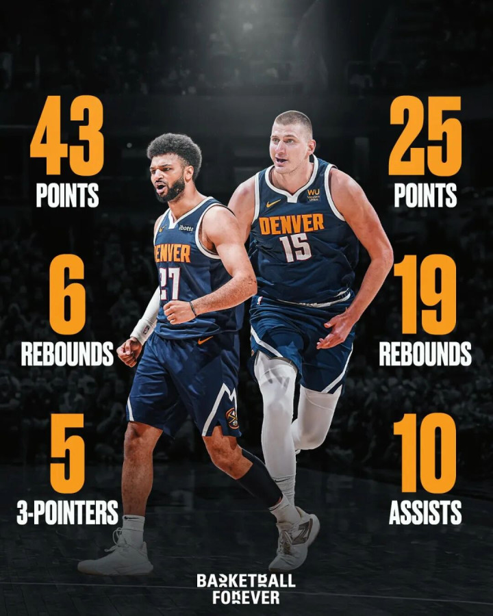 In this game, Jokic still performed well: 9 of 10 shots, a triple-double of 25 points, 19 rebounds and 10 assists, with a plus-minus value of +17.