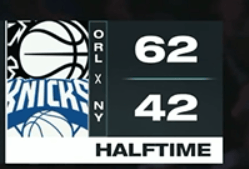 TheMagicheldthered-hotKnicksto42points,thefewestpointsinafirsthalfthisseasonforNewYorkOrlandoleads62-42athalftime.