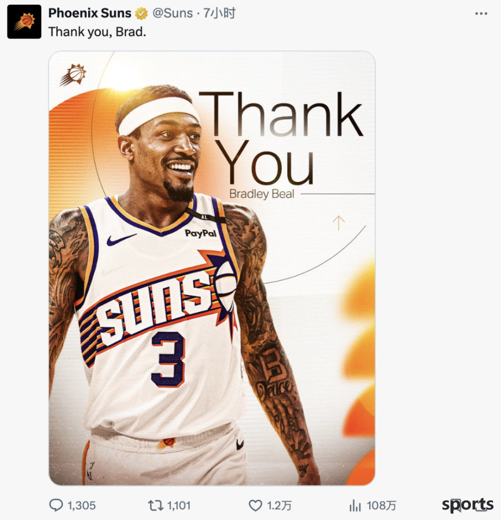 After the official buyout agreement was officially reached, Suns official social media immediately posted a poster saying: Thank you Bill.