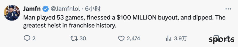 This buyout and signing, Bill still lost $2.7 million, and Westbrook's annual salary in the 2024-25 season was only 3.3 million.