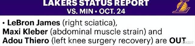 Before the Lakers played against the Timberwolves, they finally had a good thing, that is, the two generals Doncic and Reeves were not injured and could play against the Timberwolves. However, the Lakers still have James, Kleber and rookie Adu Tierro on the injured list. It can only be said that they are lucky that they have not added more injured players at this stage.