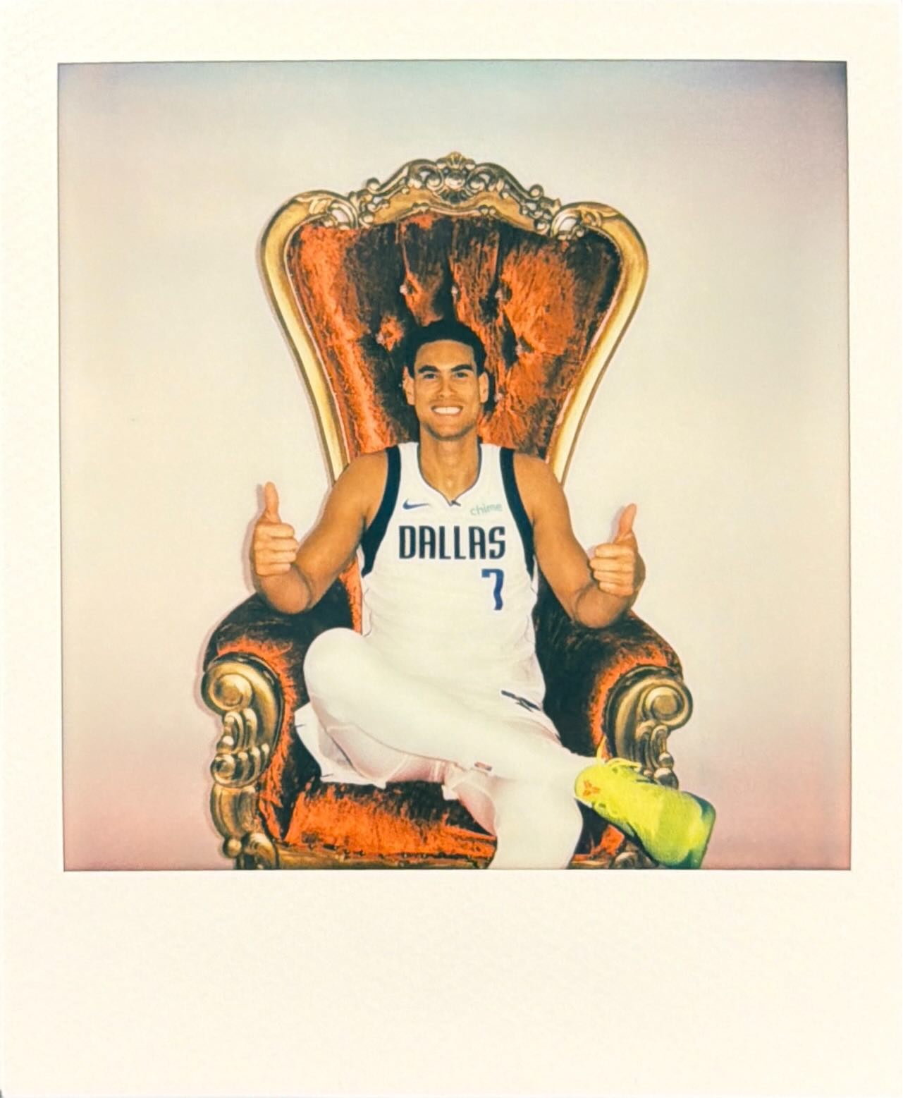 Hupu News Today, October 21, the Mavericks social media posted a group photo of players confidently sitting on golden seats to take makeup photos, with the text: