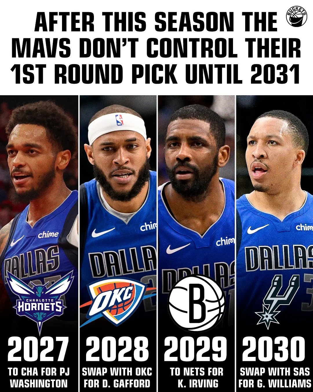 Regarding the Mavericks' first round in 2027-30, the specifics are: