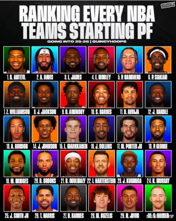 Recently, the American media quincy hoops ranked the power forwards of the 30 teams in the league for the 25-26 season. Note that each team selected a power forward for the ranking, rather than selecting the top 30 power forwards in the league, because some teams may have two outstanding PFs. Giannis Antetokounmpo is the undisputed number one.