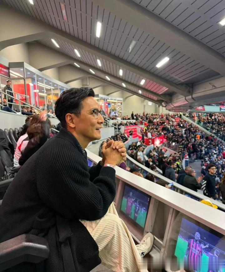 51-year-old Daniel Wu was watching a football match in Italy. Although he looks old, he has a good and stylish figure.