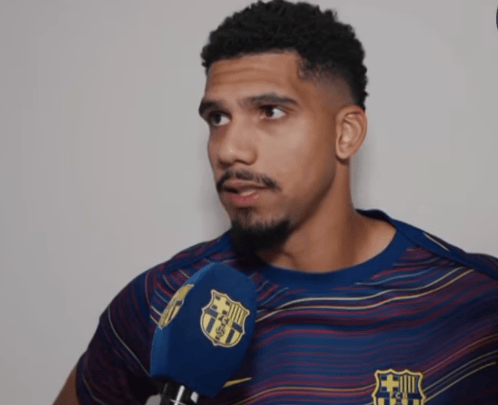 Hupu, October 27th: Barcelona central defender Ronald Araujo was interviewed by the mixed interview area and Barcelona TV after losing 1-2 to Real Madrid in the El Clasico.