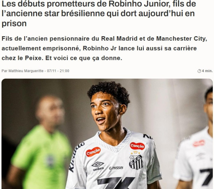 November 8 According to French media Footmercat, Robinho Jr., the son of former Santos winger Robinho, is currently making a mark in the team and is expected to inherit his father's mantle.
