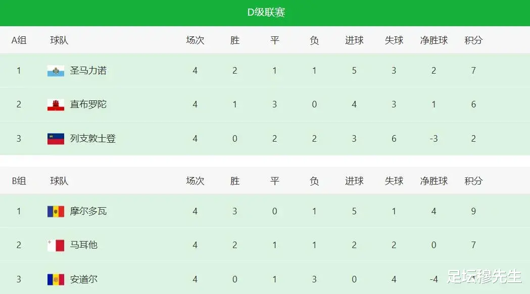 In fact, fans who are familiar with European football are not too unfamiliar with them, because whenever there is a big score, you can usually see their names. And once they appear, they give people a refreshing feeling of having a goal difference. San Marino is so weak, but can still take the first place in this group, which is indeed the best among them. Of course, Europe is constantly changing. If a team can keep improving, it can leave the D level and move to a higher level. For example, Luxembourg was a weak country before, but in recent years they have done quite well. Therefore, Class D is fluid, and whoever is here is the loser. But I have to say that in places like Liechtenstein, Malta, Andorra, Gibraltar, and San Marino, the smell of fish belly seems to be impossible to get rid of.
