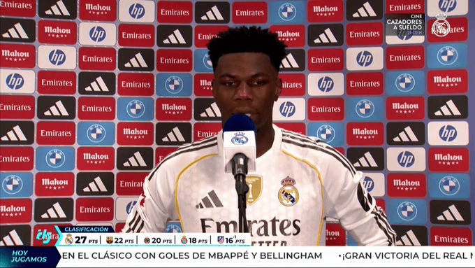 Hupu, October 27th: Real Madrid midfielder Joan Armene was interviewed by RMTV and the mixed interview area after defeating Barcelona 2-1 in the El Clasico.