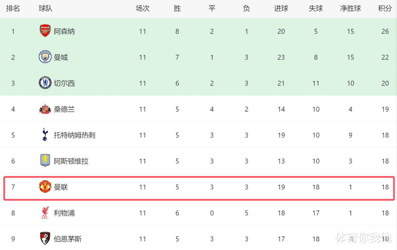 So far this season, Manchester United's performance in the first 11 rounds has basically satisfied the fans. During this period, although they lost to Arsenal and Manchester City, they defeated Chelsea and Liverpool, in addition to drawing with Tottenham. Facing the traditional strong teams in the Premier League, Manchester United's progress is very obvious compared to last season. With such a difficult schedule, Manchester United scored 18 points in the first 11 rounds, even surpassing Liverpool in the rankings. This result will undoubtedly greatly enhance the team's confidence.