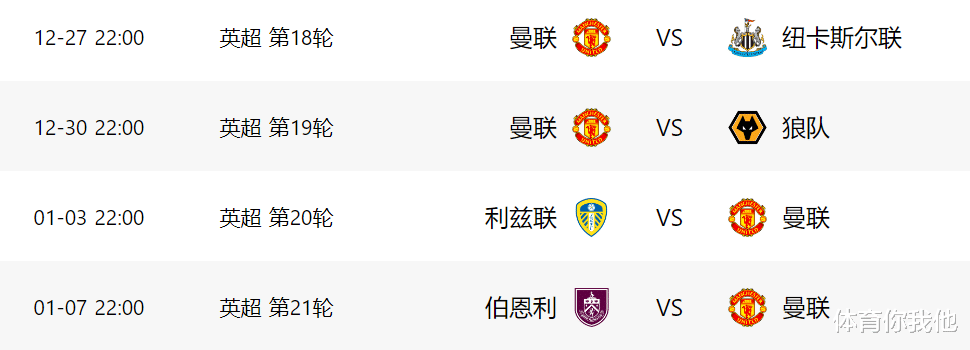 In the away game, Manchester United scored 6 points in 6 games, but they only lost to Manchester City and Brentford. Even against the defending champion Liverpool, Manchester United still scored 3 points. In the next five away games, it may be difficult for Manchester United to win against Crystal Palace and Villa, but against three teams: Wolves, Leeds United and Burnley, Manchester United definitely has a chance to win at least two games.