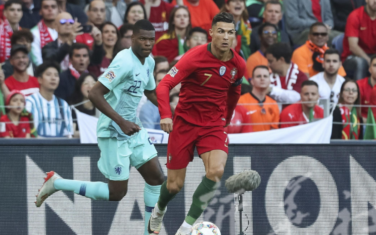 First half: Portugal created a threat through wing breakthroughs. Leo's inward shot scored first, and then Ronaldo received a header from B Fee's pass to expand the score, leading 2-0 at halftime.