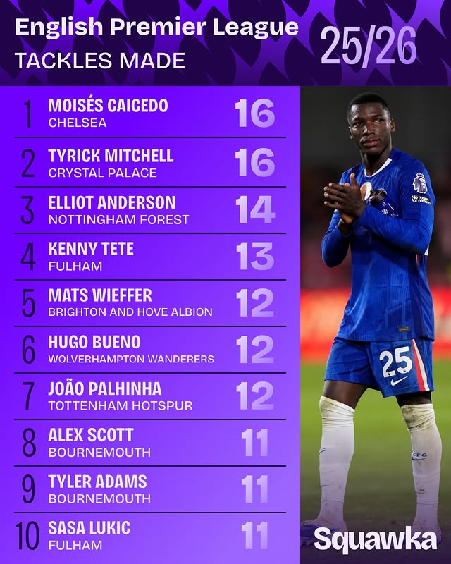 Hupu September 15th According to Squawka data statistics, the Premier League steals list has so far this season, with Kesedo tied for first place with Crystal Palace full-back Mitchell 16 times, and Paligna is in the list.
