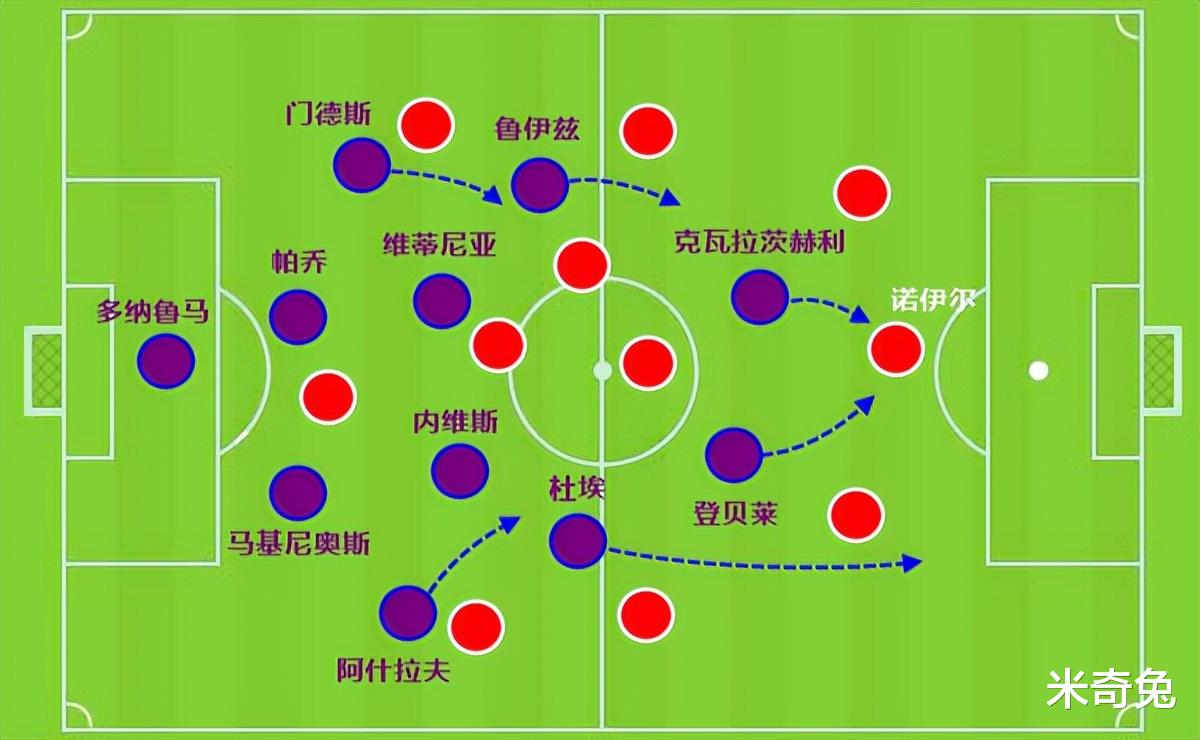 Of course, this is also based on the fact that the entire Paris team engages in a high-position press. Starting from forward Dembele, it will pressure the opponent, and it will also help the small Neves to provide sweeps and supplements from behind.