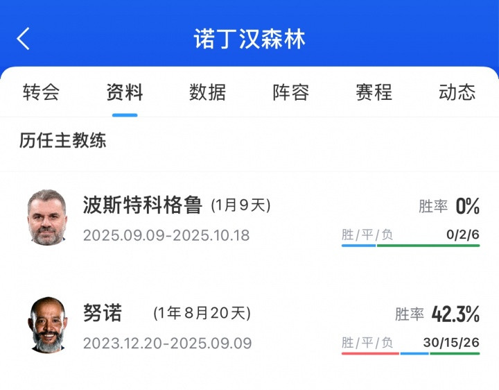 In the first eight rounds of the Premier League this season, Nottingham Forest fired Nuno and Postkoglu. Among them, Postkoglu was fired after only leading the team for 39 days. Nottingham Forest is currently in the Premier League relegation zone with 5 points from 8 rounds, 2 points away from the safety zone.