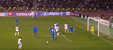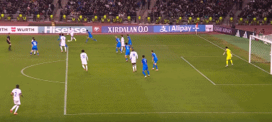 45' In the corner kick attack, Azerbaijan goalkeeper Mahamadaliyev made a mistake first, and then he blocked the ball subconsciously blocked by Hevron Thuram and threw it into his own door. France 3-1.