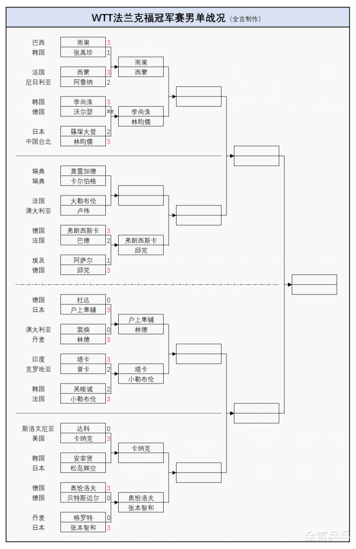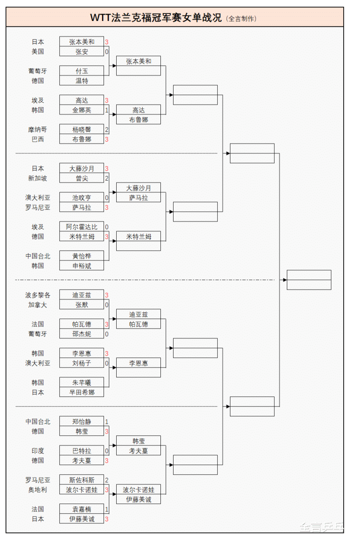 On November 6th, the table tennis WTT German Frankfurt Championship is about to begin its third day of competition. Currently, 13 top 16 men's and women's singles have been decided. 6 Germans have passed and 5 Japanese have advanced. The overall results are as expected by most fans. The last 6 top 16 seats will be announced on the evening of November 6th, and the first 5 1/8 finals will be played in the early morning of November 7th. Please see below for details and the latest schedule.